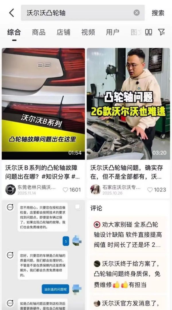在一些知名的社交平台和汽车论坛上搜索“沃尔沃 凸轮轴”,可以发现大量吐槽和投诉帖子,不少车主还成立了维权群,人数超过百人。车主们甚至把凸轮轴问题戏称为“凸轮咒”,这反映了问题的普遍性。