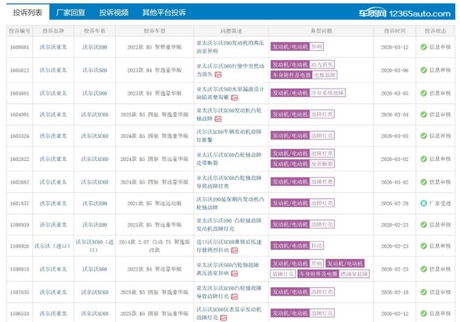 朱先生的经历并非孤立事件。自去年以来,部分沃尔沃车型的凸轮轴故障问题开始集中显现,不少车主遇到了类似情况,车辆行驶里程从3000公里到刚出保修期的都有出现发动机报警或抖动的问题。随着3·15临近,相关投诉在全国范围内呈现集中爆发态势,涉及多款主力车型,面对车主维权的压力,沃尔沃仍未采取任何行动。