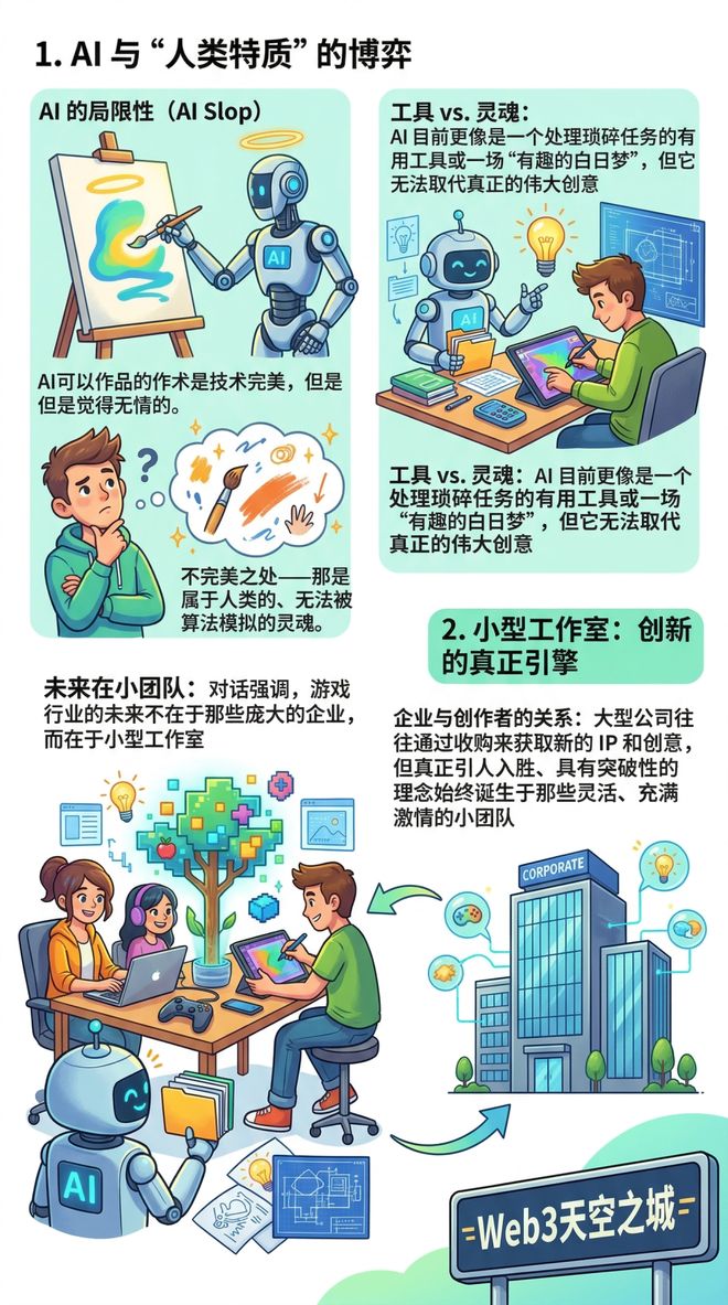 这种幻灭促使他思考开发者在整个产业链中的地位。他认为,过度的运营成本和行政干预正在稀释游戏的纯粹性,真正的传奇作品始终应该由那些“懂代码、懂艺术、更懂玩家”的古怪天才来掌舵。