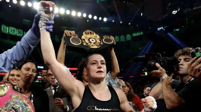 职业拳击手Katie Taylor在比赛中获胜的照片