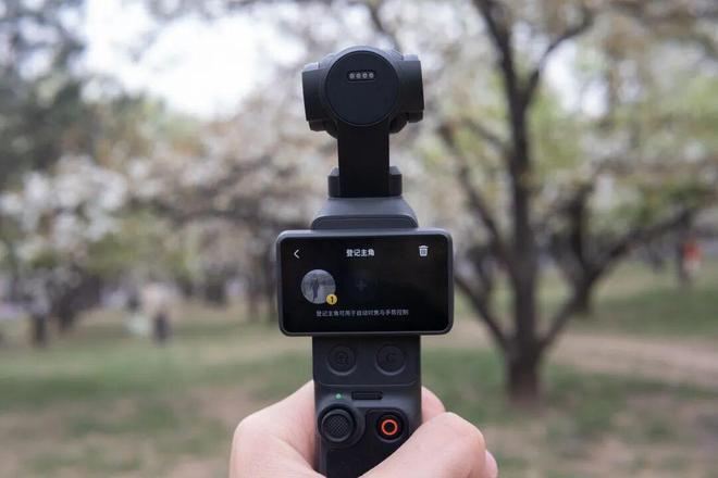 Pocket 4 用的是智能跟随 7.0,配合新增的「锁定主角追焦」和「登记主角优先」。在多人场景下让目标短暂被遮挡的测试中,它没有跟丢;走出遮挡物之后焦点直接续上。它甚至允许用户预先「登记」一张人脸(最多三张),开机后优先跟随这个人,逻辑类似一个非常克制版本的人脸记忆。