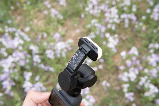 最关键的一点是它和云台的联动:补光灯固定在云台上,跟着云台一起转,所以无论运镜怎么动、被拍的人怎么动,光的方向都是稳的。这和外接补光灯的体验差出了一整个段位——后者是「光固定在那儿,希望人不要走出去」,前者是「光跟着人走」。