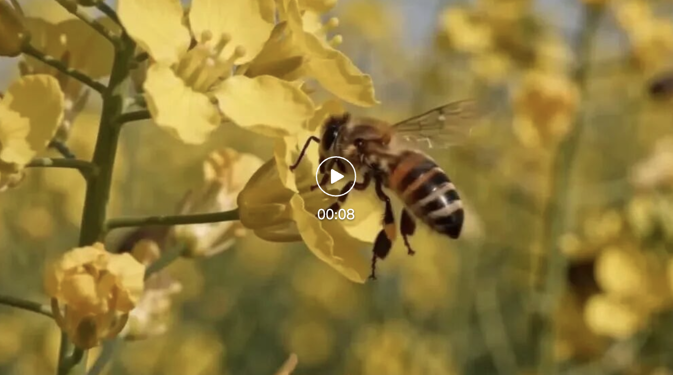一段蜜蜂采蜜画面,蜜蜂细节经得起放大看,从远景花丛切到近景再怼到特写,镜头切换丝滑: