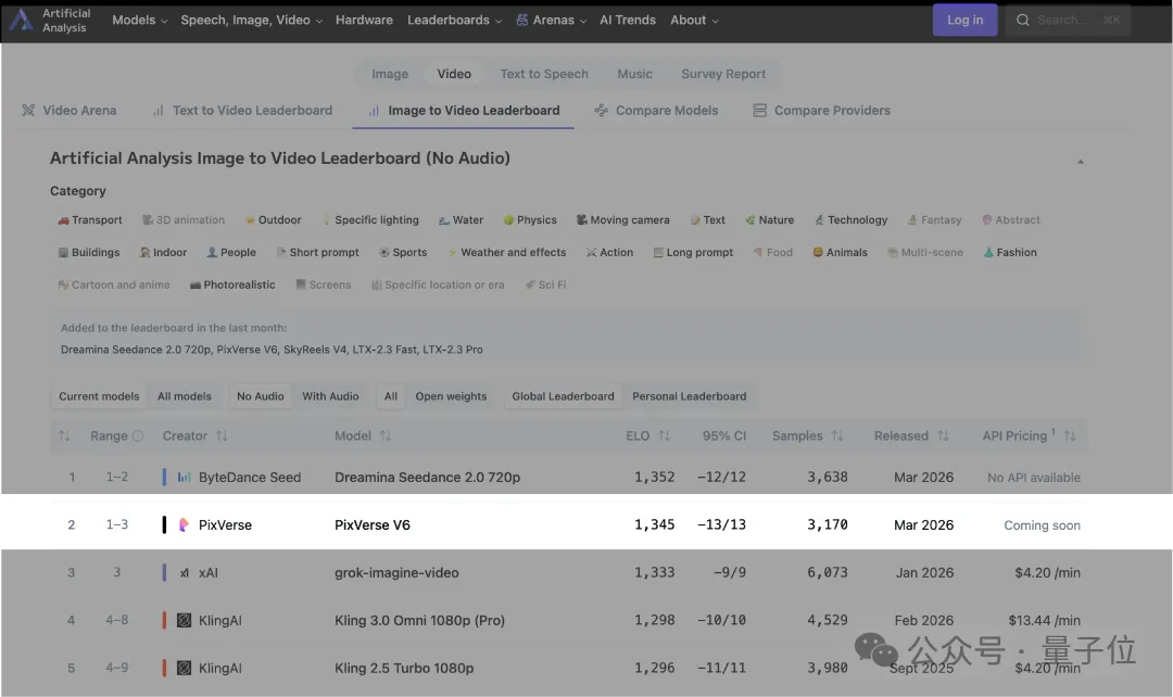 - 在Artificial Analysis最近发布的排行榜上,PixVerse V6位列全球图像生成视频排名第二位,仅次于Seedance 2.0。