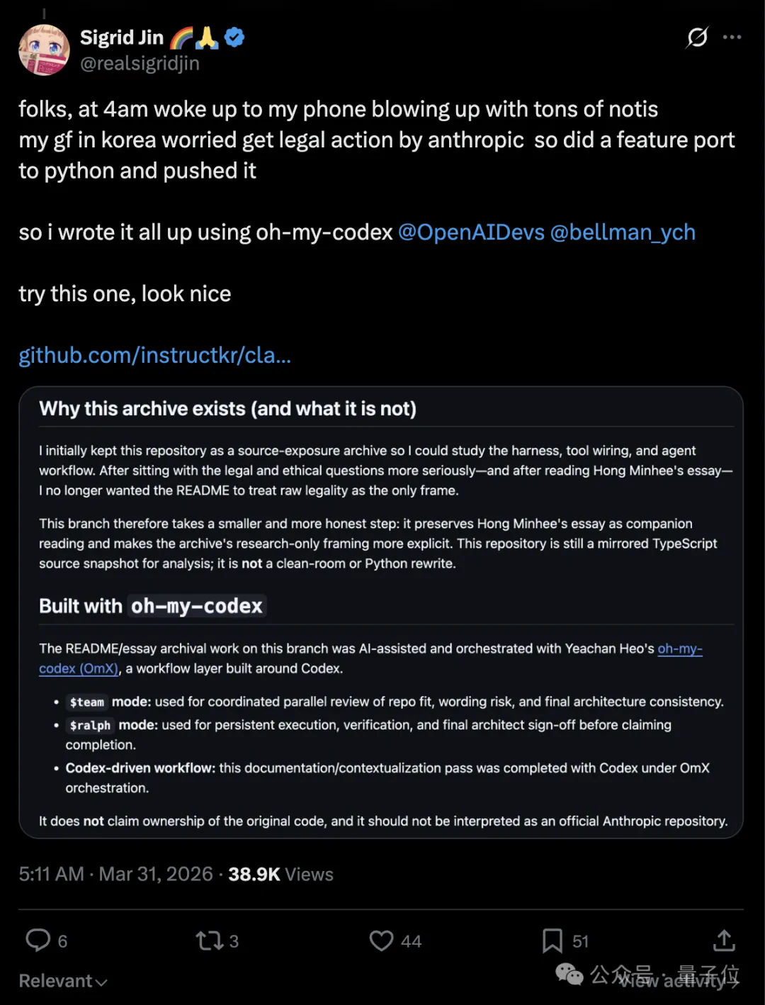 Claude Code被泄露也就罢了,xAI还要跟着火上浇油,帮着开发者快速移植,生怕Anthropic一封邮件就把项目给搞下架了。