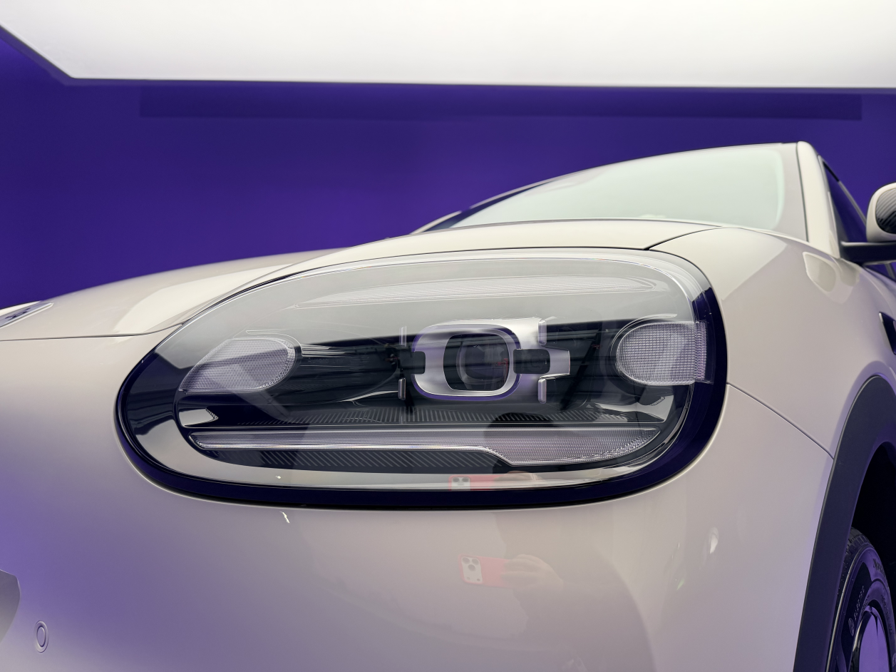 设计亮点之一在于两侧的Q型大灯,内含双条形LED光带,既精致又充满趣味。前保险杠的设计也采用了弧线线条,并且在两侧加入了斜纹装饰元素,使得整个车头看起来更加富有层次感和动感。
