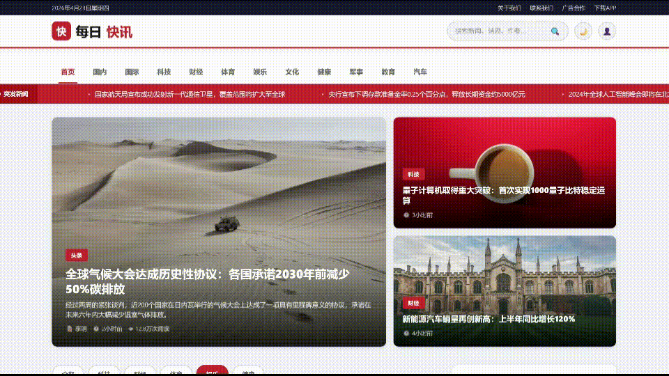 Qwen3.6-27B独立完成了整个项目规划,包括科技、财经等五个主要版块的设计,并且考虑到了天气预报和广告位等功能性元素。设计条理清晰,内容丰富,视觉效果出色。