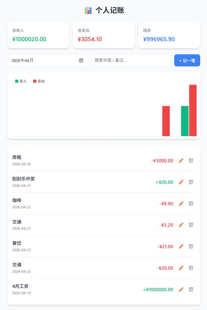 在这一任务中,Qwen3.6-27B展现了稳健的性能,成功实现了记录管理、月度筛选以及收入与支出统计等功能,并且能够正确持久化数据存储。