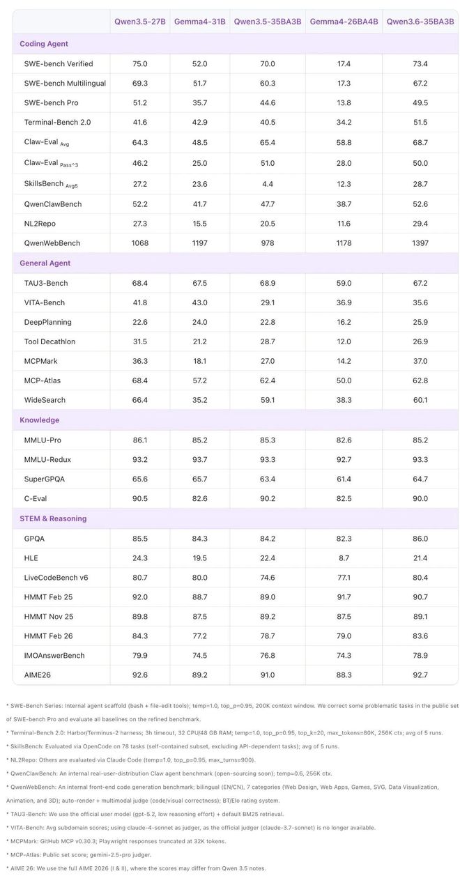 这一新模型拥有350亿的总参数量,激活参数仅为30亿。它以其轻量化高效和智能体编程能力著称,并在多模态感知与推理方面表现出色,超越了谷歌近期推出的Gemma 4系列和其他阿里内部模型。