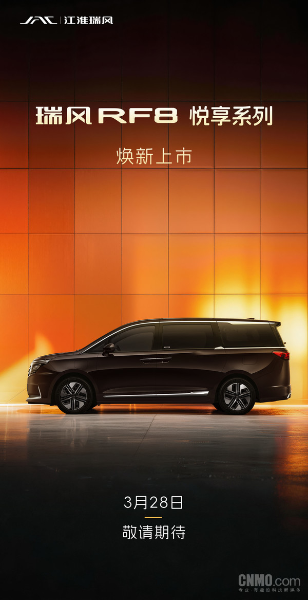江汽集团日前发布消息,其旗下的中大型MPV——瑞风RF8悦享系列将于3月28日正式推出市场。这款新车此前已开放预售,主打“全能满配越级舒享MPV”的定位,以“全员舒适、从容驾控、全家安心”为设计理念,旨在为家庭用户提供更加满意的出行体验。