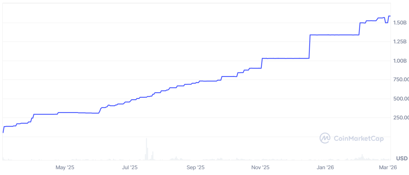 尽管在全球稳定币市场中所占比例较小,但RLUSD的流通量仍在稳步增长,并已经达到了约15亿美元的水平。