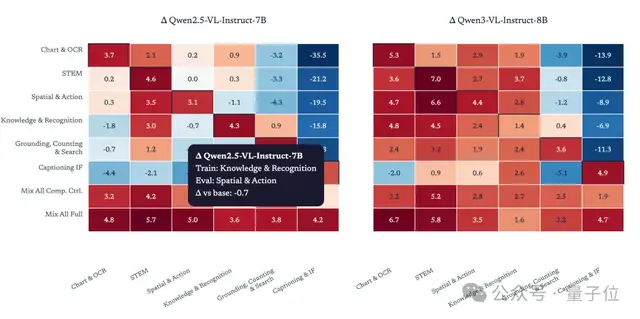 通过广泛的训练数据覆盖,模型能够学习到更加通用的视觉推理模式,并且避免了在单一任务上过度优化导致的能力下降问题。