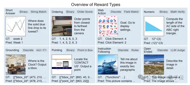 为此,Vero提出了任务路由奖励机制:设计了一套多路奖励系统,能根据任务类型的不同,自动把输出路由给相应的验证器,来分别计算奖励。
