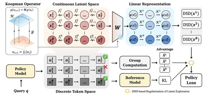 在此框架下,ReLaX采用了先进的ResKoopNet技术,将最后一层隐状态的动态变化映射到一个易于分析的线性空间中。通过计算单个轨迹内部动态谱模长方差的DSD指标,可以准确量化模型在推理过程中的“异质性”程度。
