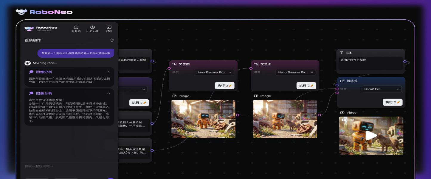RoboNeo实现了“自然对话即创作”的工作模式,用户只需描述自己的想法,该系统便能自动解析并生成相应的图文或视频内容。这一方式大幅降低了操作门槛,使全球的内容创作者都能够轻松上手。