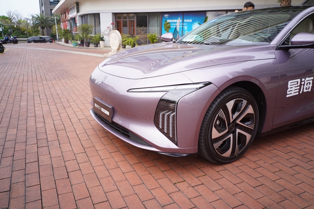 星海S7增程版在外观和内饰设计上与纯电版保持一致。该车型采用了封闭式前脸、大尺寸灯组以及低风阻轮圈等元素,紧跟新能源车型的设计潮流,一眼就能看出这是一款新能源汽车。其风阻系数仅为0.91Cd,属于量产车型中的优秀水平。