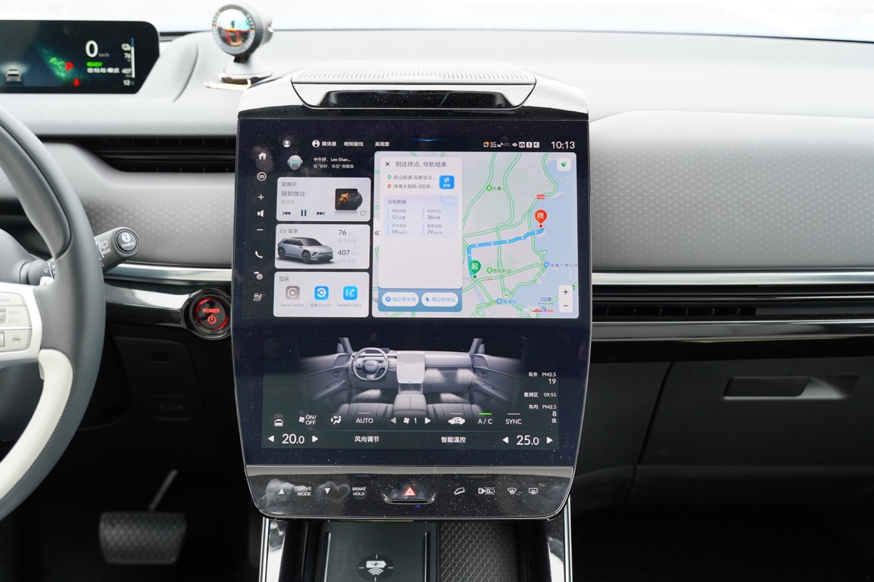 令人惊喜的是电门调校:初段启动时平顺如自吸发动机,深踩油门后又能瞬间释放出200千瓦的强大动力。这种渐进式加速方式既照顾了乘客的舒适性,又提供了足够的驾驶乐趣。同样,在轻踩刹车的情况下,车辆能够平稳减速直至完全停止,其制动效果甚至比燃油车更加平顺。