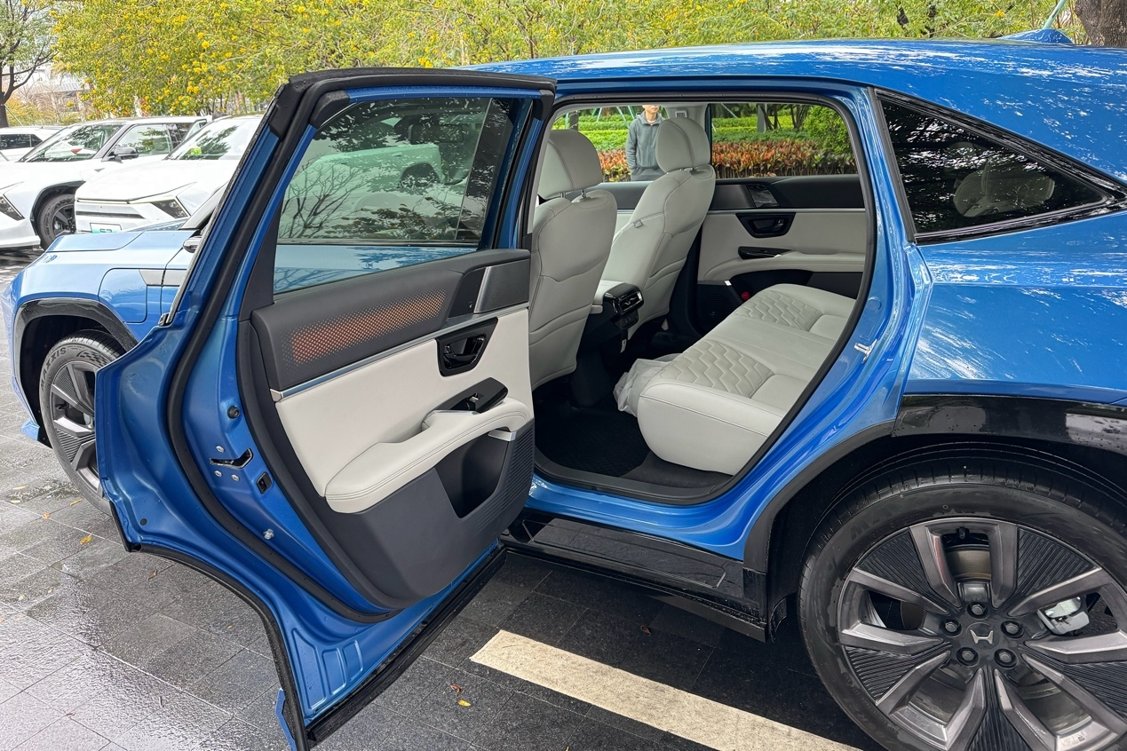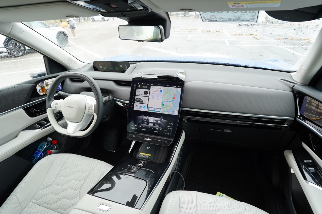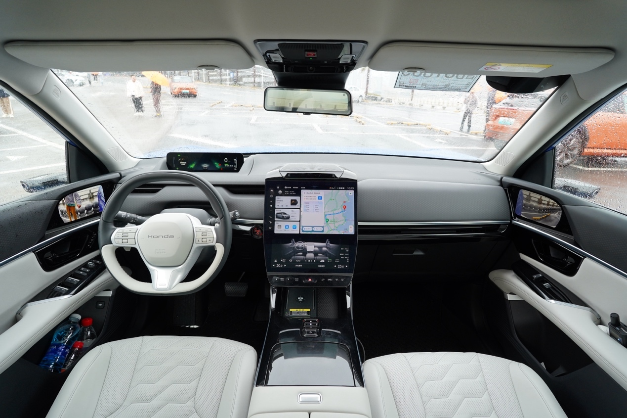 这款车并非以概念设计为主导,而是注重实用性和工程技术细节。作为一款中型纯电SUV,东风本田S7配备了89.8千瓦时的三元锂电池,共有两个版本:单电机后驱的开拓者版和双电机四驱的领航者版本,CLTC工况续航分别为650公里和620公里,售价分别是25.99万元和30.99万元。我试驾的是配备电子外后视镜、电子外后视镜显示屏、流媒体内后视镜以及实景导航的单电机后驱车型。