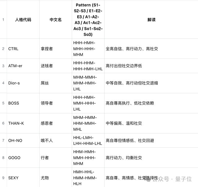系统会把我们的答题结果整理成一个15维向量,也就是把每个维度的等级(L、M、H)排成一串标签。
