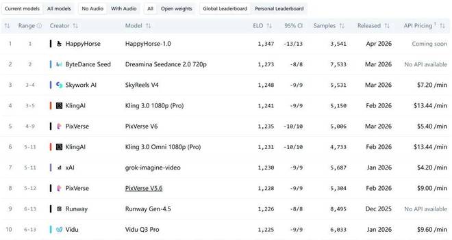 周二晚,在知名的 AI 测试平台 Artificial Analysis 上,“HappyHorse-1.0”这个神秘视频生成模型突然登顶榜首,引起了整个 AI 社区的热烈讨论。