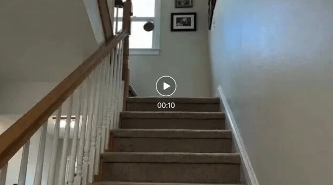 提示词:一个橡皮筋球沿着楼梯滚动,每次撞击都有不同的轨迹,最后冲进浴室,在瓷砖上反弹后停在马桶里。没有人来取回它。