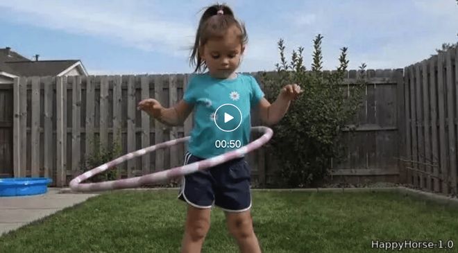 提示词:一个小孩腰部转动呼啦圈的画面,逐渐上升到胸部,然后掉落到膝盖上,最后落地。孩子们拾起它,重新尝试。