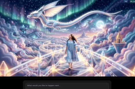 1月发布的PixVerse R1号称全球首个通用实时世界模型。早期内测画质仅540P,但交互方式极具颠覆性——你在下面打字,它在上面实时生成画面、推进剧情、切换镜头,仿佛为你造了一个世界;2月11日,R1迎来重大更新:支持720P高清实时生成、音频同步生成、UGC社区上线、API开放。