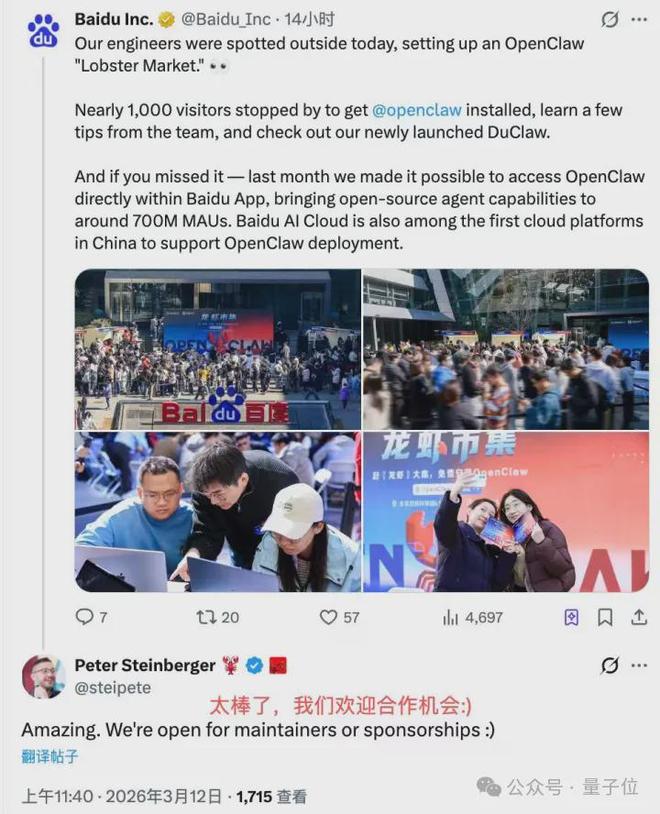 不仅如此,活动现场照片在社交平台传播后,OpenClaw创始人Peter Steinberger更是直接公开评论——Amazing