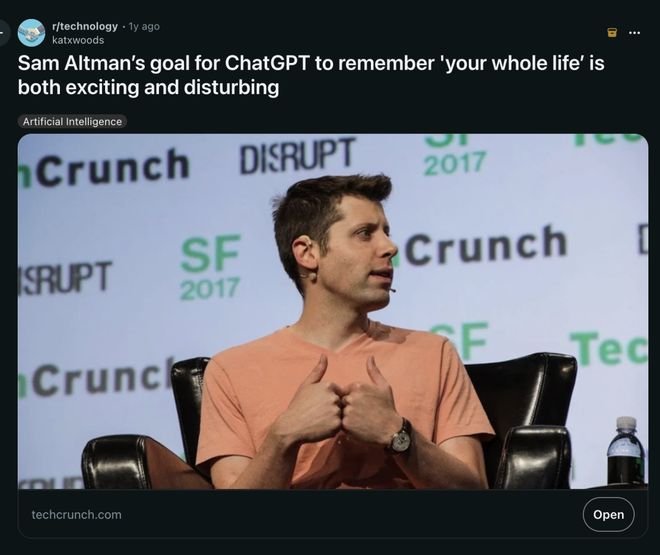 并且,去年,在闭门会议中,OpenAI的奥特曼曾提到过「个人助理」的终极形态——记住你全部生活。
