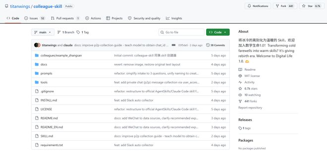 这就是GitHub上最近杀疯了的顶流项目——同事.skill (Colleague-Skill)。