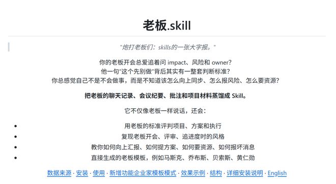 那就把老板判断项目的脑回路、批评方式和向上管理规则沉淀下来吧,ta的聊天记录、会议纪要、批注和项目材料,都可以蒸馏成一个skill。