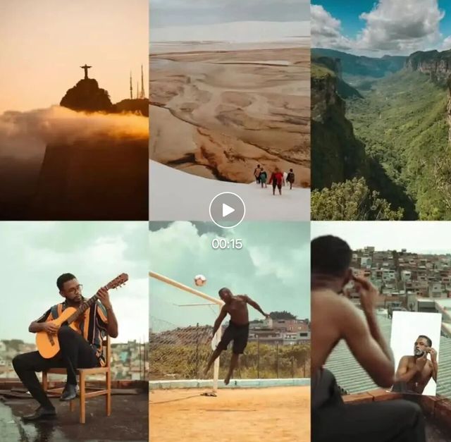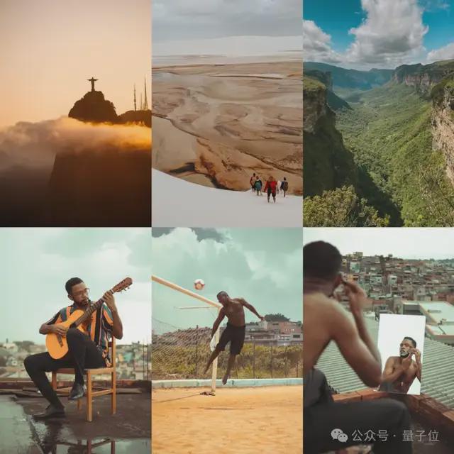 根据六宫格参考图生成的巴西旅行片段,完美呈现了异国风情。