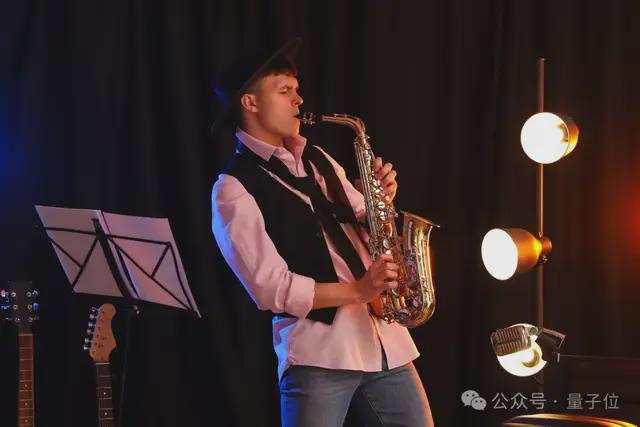 接下来尝试更复杂的任务——从一张图片生成一段视频。给定的图片是一张场景图,提示词为:“根据这张图片和音频生成萨克斯表演。”