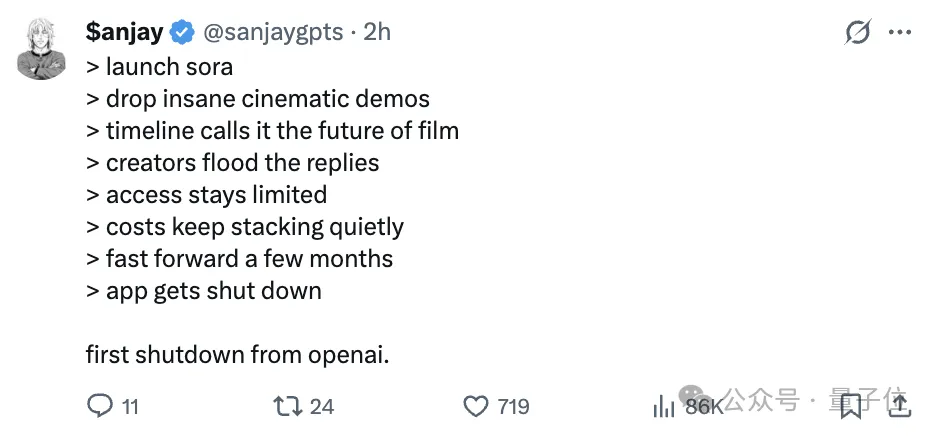 Sora的关闭导致了社交媒体上的广泛讨论。