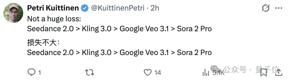 技术上,天花板已经被重塑,字节问鼎了新一轮制高点。2026年春节前后,Seedance 2.0发布后,其展现的对复杂物理规律(如流体动力学、织物褶皱)和人类微表情的极致还原,在社交网络上引发的反馈和热议堪称地震。