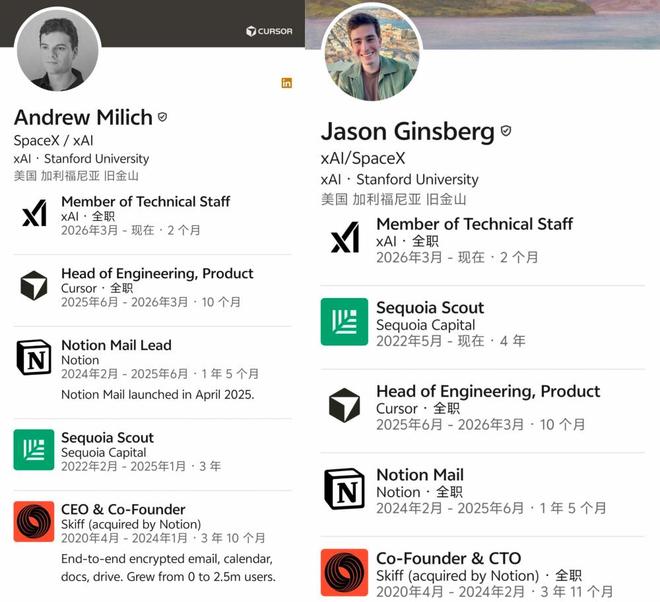 今年3月,硅谷知名的技术组合Andrew Milich和Jason Ginsburg离开Cursor加入xAI。两人曾在Cursor担任产品工程负责人,联合创办了Skiff并打造了一体化办公工具套件。在xAI的新角色中,他们将负责主模型、语音及图像生成业务的开发。