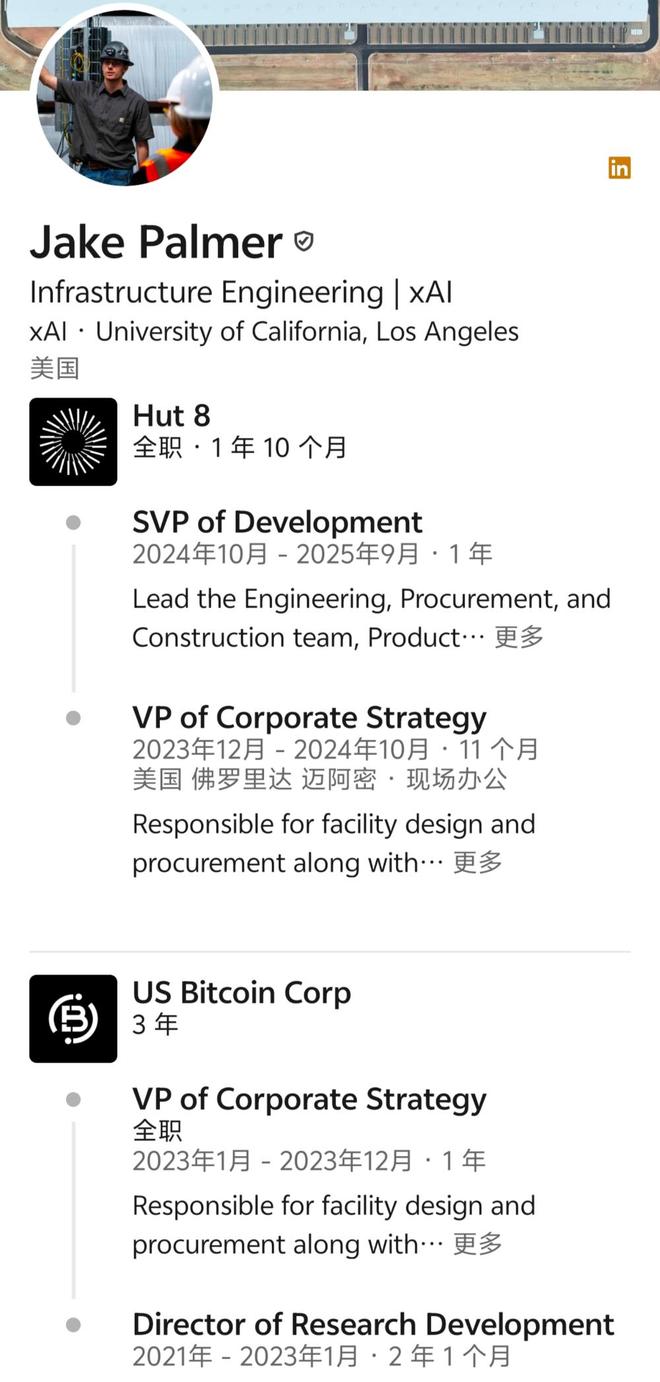物理基础设施部门由Jake Palmer领导,他在今年9月加入xAI之前曾在北美最大的比特币矿企Hut 8担任高级开发副总裁。