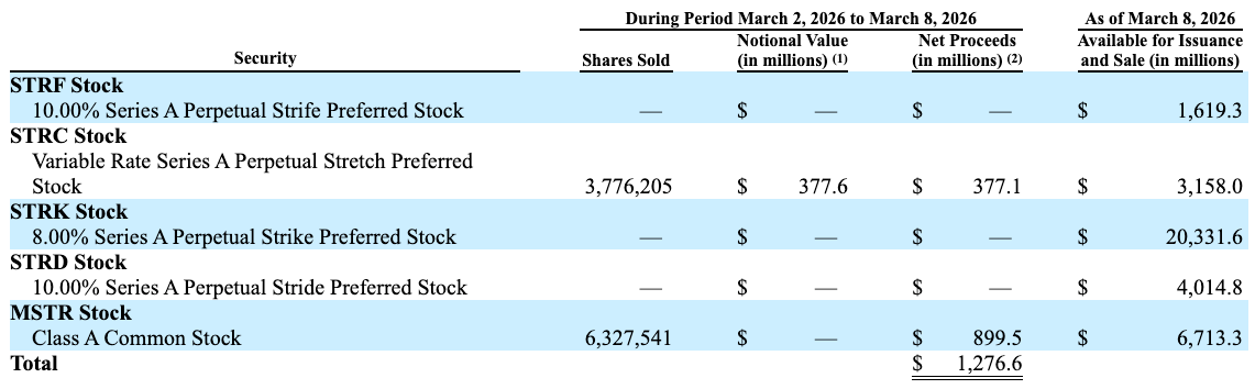 一份公司报告指出,在最近的大规模比特币购买行动中投入了13亿美元,这是该公司历史上最大的单笔投资之一。普通股 MSTR 在已公开的销售活动中筹得的资金最多,接近9亿美元。