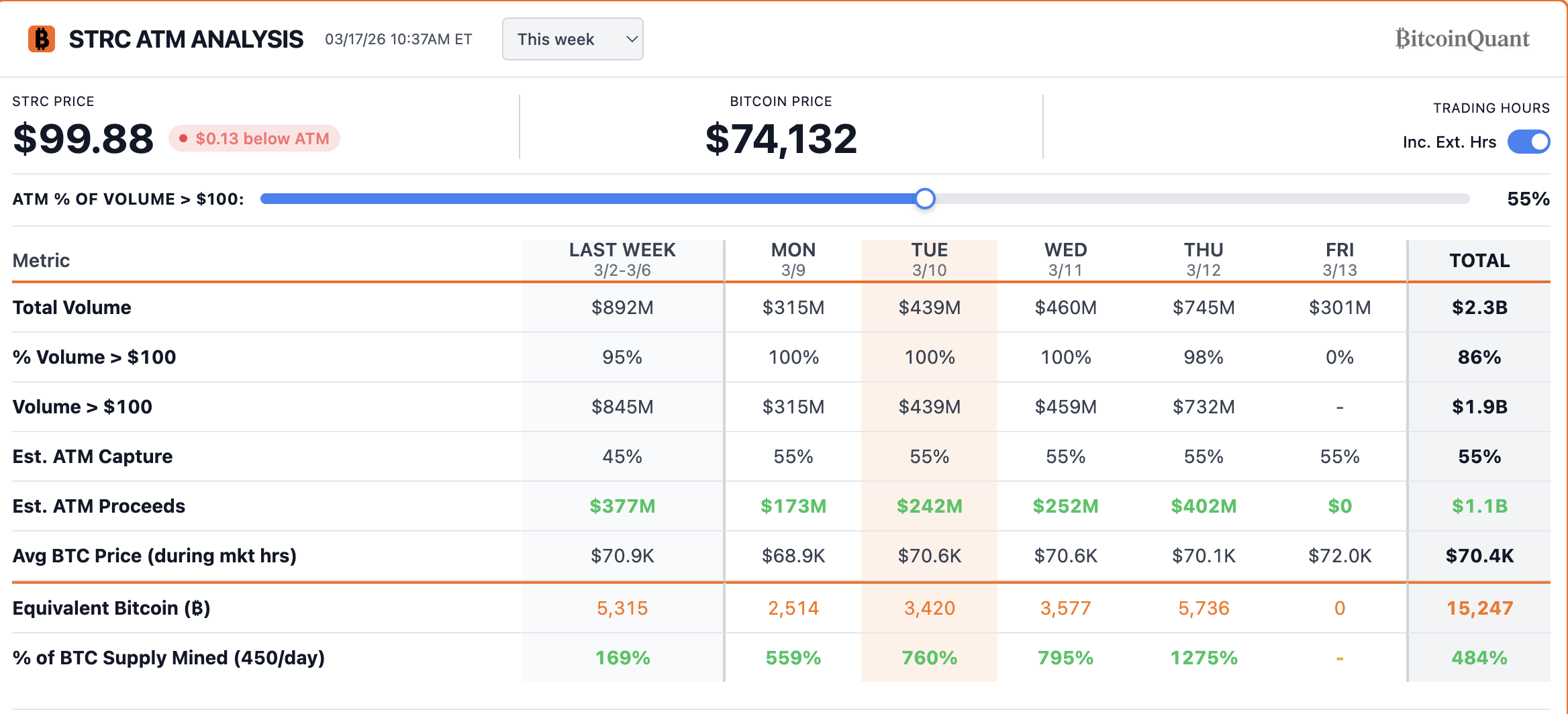 因此,融资渠道被关闭,导致STRC支持的比特币购买活动中断,这一情况从上周五开始显现。
