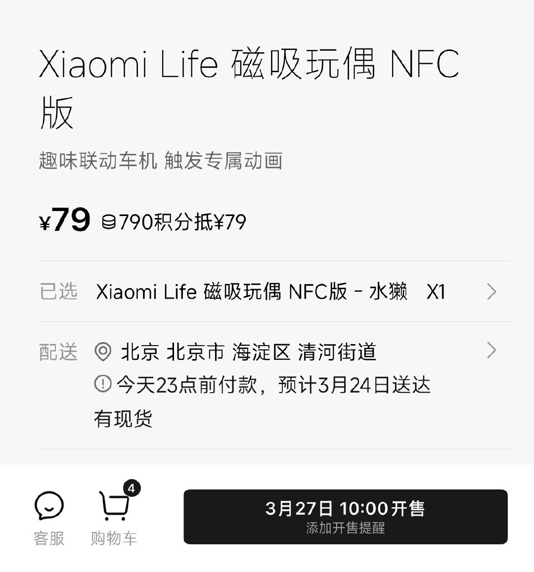 本次推出的磁吸萌宠非常受欢迎,上架后很快就售罄了。磁吸萌宠将于 3 月 25 日 10:00(猫咪款)、3 月 27 日 10:00(水獭款)再次开售,建议大家在小米汽车 APP 添加开售提醒,避免错过开售时间,再次感谢大家的支持。