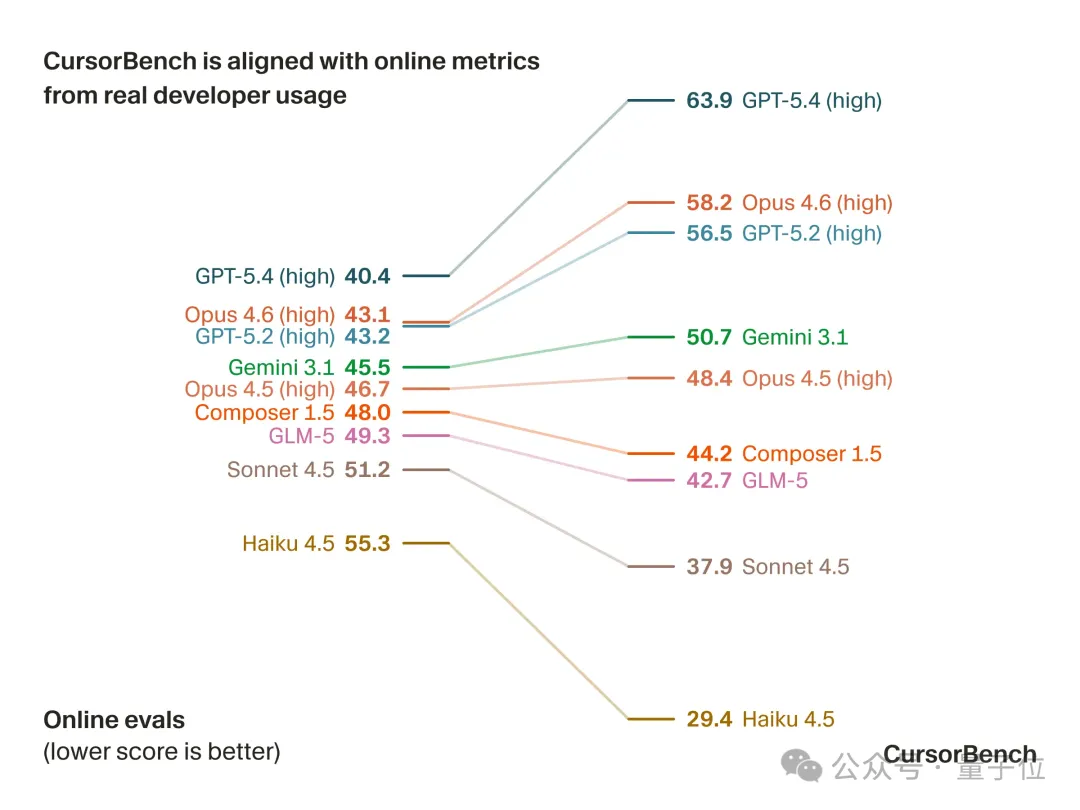 CursorBench的排名与真实用户体验更加一致。