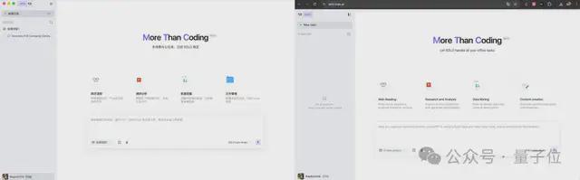 从外观上看,它突破了传统的IDE框架,提供PC端和Web版两种选择;在功能上,原有的AI代理工具已被扩展至整个互联网产品研发链: