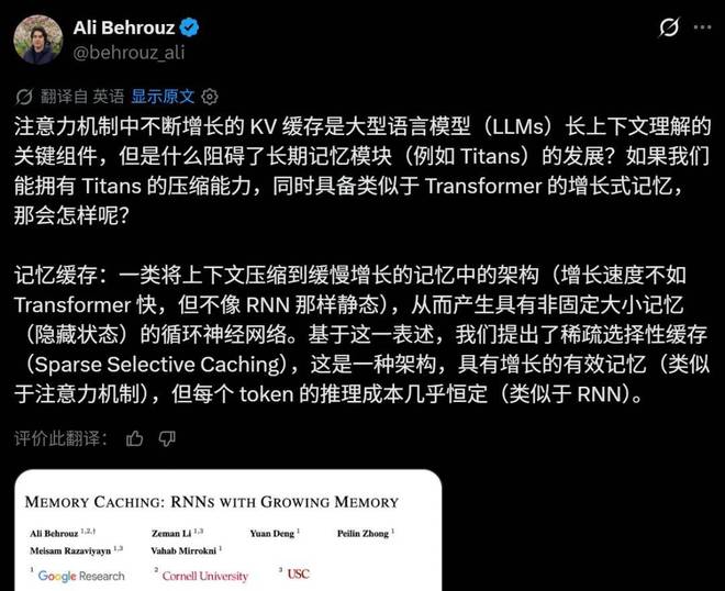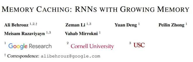 - 论文名称:《Memory Caching: RNNs with Growing Memory》