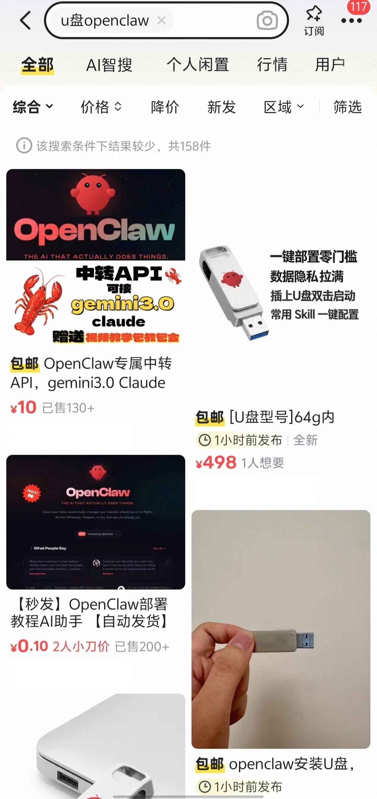 一些商家抓住用户安装过程中可能遇到的问题,推出了上门服务业务,并在几天内赚取了26万元。如今,这种上门服务也被省去了,市场上开始流行起一种预装有 OpenClaw 的 U 盘,售价从99元到500元不等。