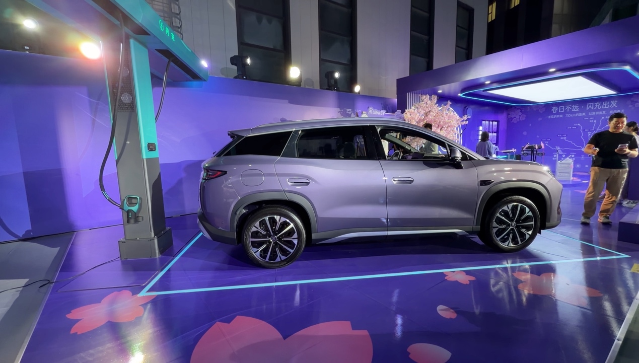 车身侧面通过三段式腰线强化结构感,轮眉区域的内凹设计让整车更有肌肉感。悬浮式车顶配合平直的线条,不仅提升视觉比例,也兼顾了后排头部空间表现。细节上,新车配备19英寸低风阻轮圈,并通过优化车身开口与装饰件,进一步降低风阻,对续航表现起到正向作用。车身尺寸方面,新车长宽高为4850/1910/1670mm,轴距2840mm,定位中型纯电SUV。
