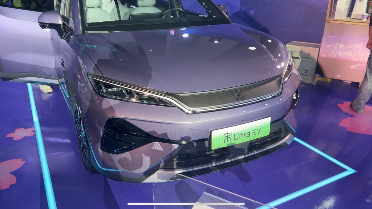 从设计来看,宋Ultra EV延续了比亚迪最新的家族化风格,但在细节处理上更强调简洁与科技感。前脸采用极简线条勾勒,配合黑色格栅营造出更强的立体层次。贯穿式日行灯与两侧狭长大灯形成统一视觉语言,同时具备迎宾灯效,整体观感更偏年轻化和电动化表达。