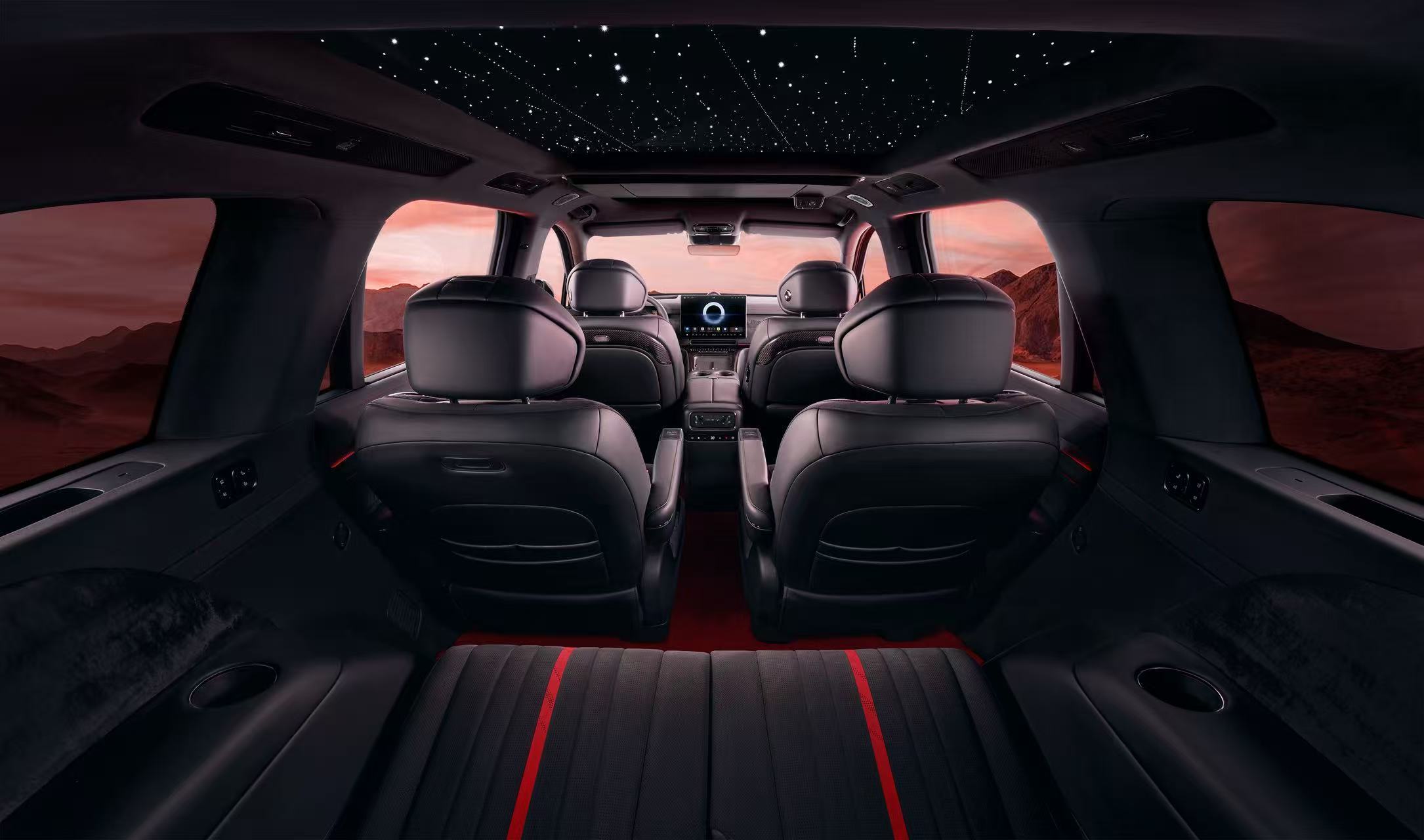 内饰方面,泰山黑武士版采用了大面积的“丹墨”材质,并在座椅缝线和头枕等细节上点缀了“丹砂”红色,形成了鲜明对比。高品质黑水晶材质的墨晶璀璨按键,采用钻石切割工艺,深邃大气;流云墨韵饰板的设计灵感来源于“流云纹”的光影效果,呈现出东方美学的独特韵味;星河天幕星空顶采用与百万豪车相同的工艺,598颗灯珠均匀分布,三种模式切换自如,营造出宁静而梦幻的车内氛围。