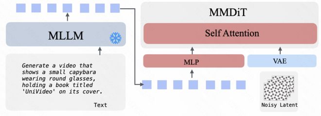 - UniVideo 的核心构成包括多模态大语言模型(MLLM)与多模态扩散 Transformer(MM-DiT)。前者负责跨多种模式的指令理解及语义推理,后者专注于在潜在空间中进行条件图像或视频建模。