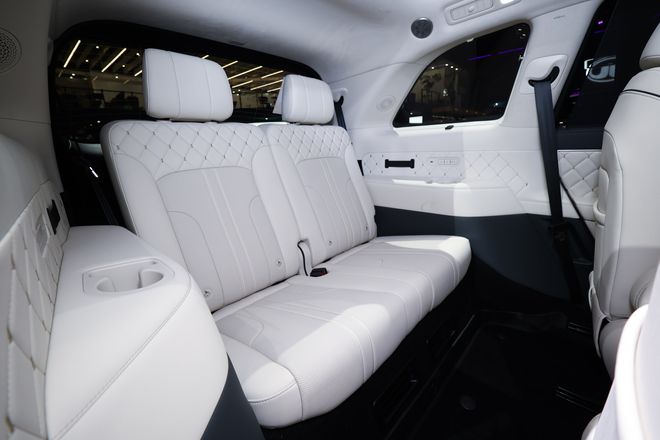 本次展览中亮相的是标准轴距版(车身长度5205毫米)和加长轴距版(车身长度5299毫米)。其中,后者的3150毫米轴距创造了高达70.2%的“得房率”。车内设计宽敞二排通道达192毫米,在满载六人的情况下还能容纳五个20寸行李箱。