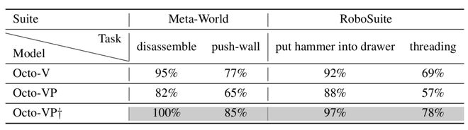 实验显示,当机器人的运动保持平稳时,这种替换对整体性能几乎没有影响;但是一旦涉及到复杂的动作转换阶段,例如移动底座或装配零件,任务的成功率就会显著下降。